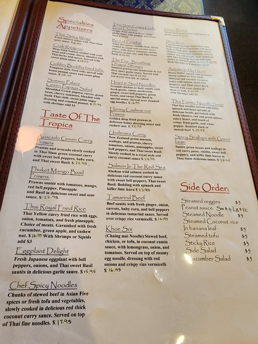 Welcome to Thai Siam Restaurant, a charming gem nestled in a quaint standalone house in Seattle's 15th Avenue neighborhood. This delightful eatery invites you to experience the vibrant and aromatic world of authentic Thai cuisine, characterized by its rich flavors, fragrant herbs, and inviting atmosphere.